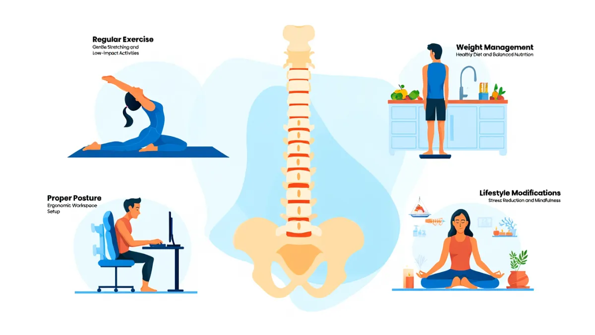 Ergonomic and lifestyle modifications (weight loss, quitting smoking, improving workstation setup)