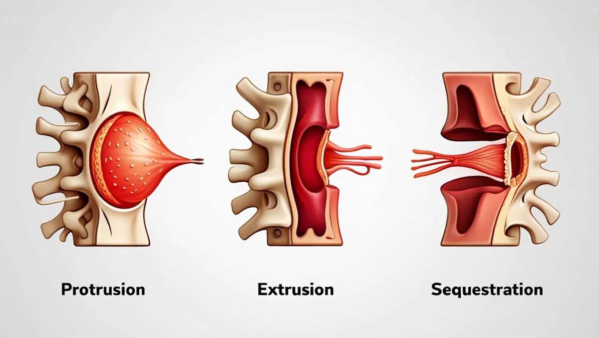 A herniated disc involves some leakage of the inner core, while an extrusion means the material has pushed far beyond the outer wall, sometimes even separating into fragments.