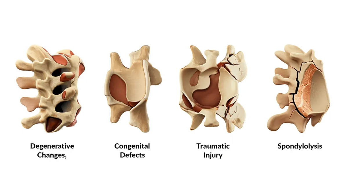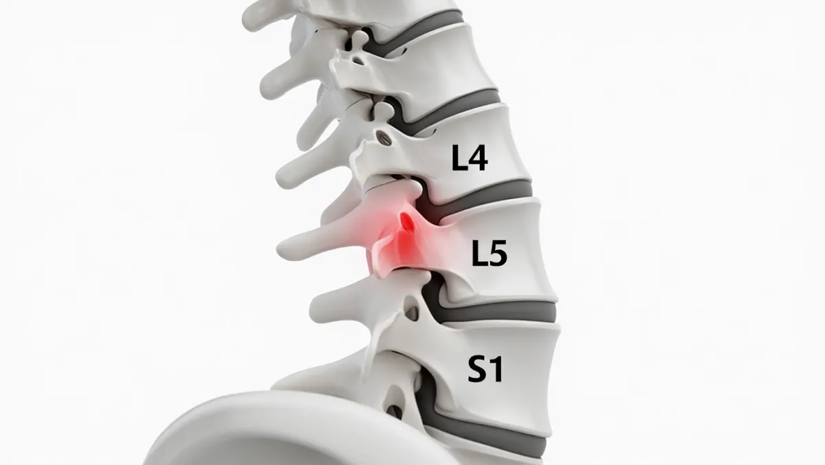 It’s graded based on how far the vertebra has slipped forward (Grade I–IV). Higher grades may require surgery.