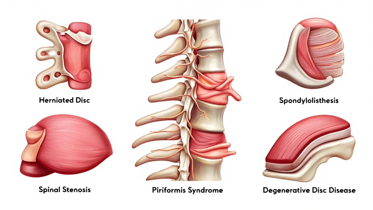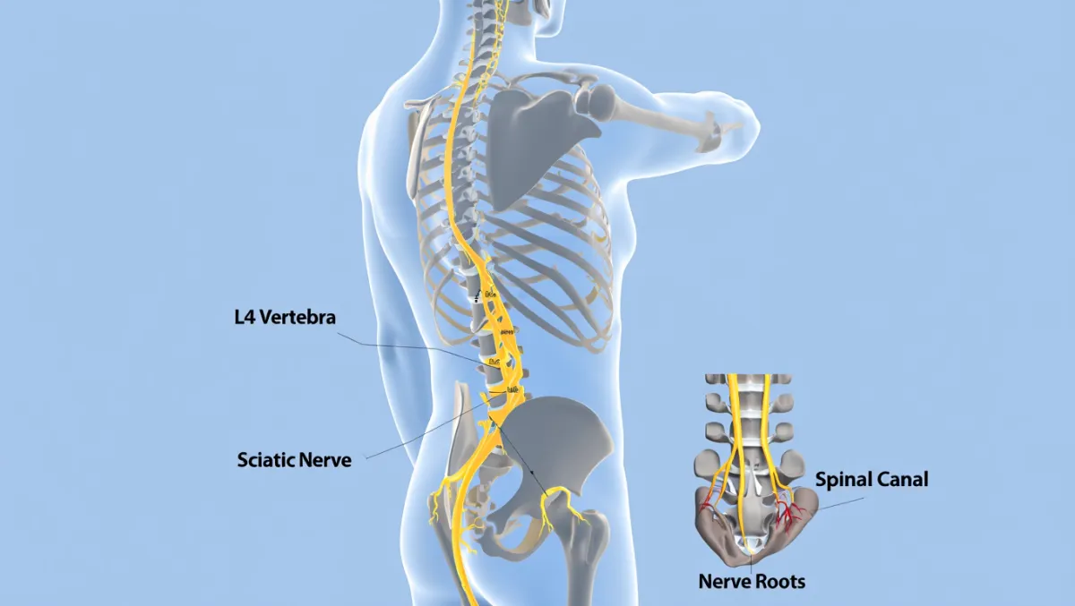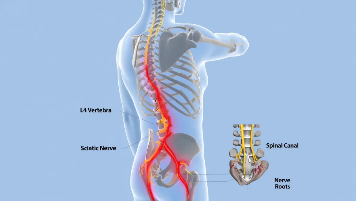 Sciatica is not a diagnosis but a symptom of an underlying condition that compresses or irritates the lumbar nerve roots (most commonly L4, L5, or S1). It often affects just one side of the body, though it can affect both in rare cases.