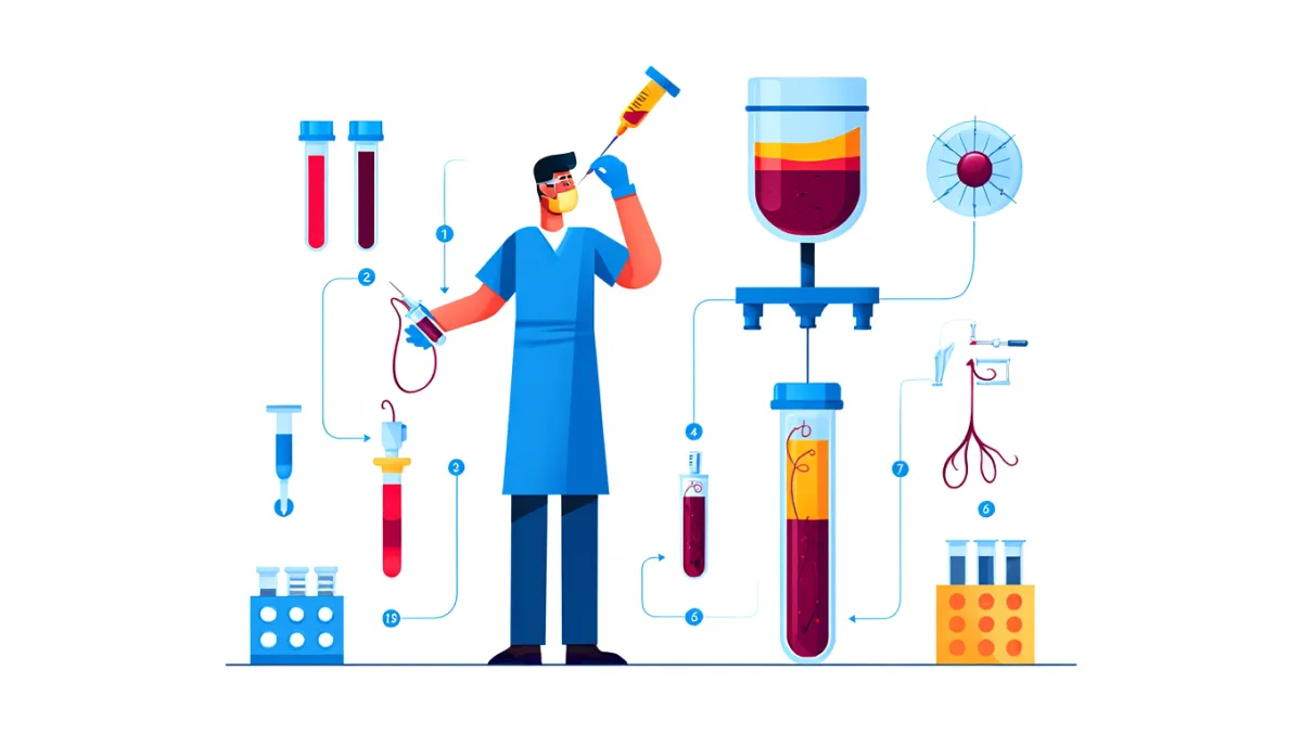 Centrifugation – The blood is spun in a centrifuge to concentrate platelets.