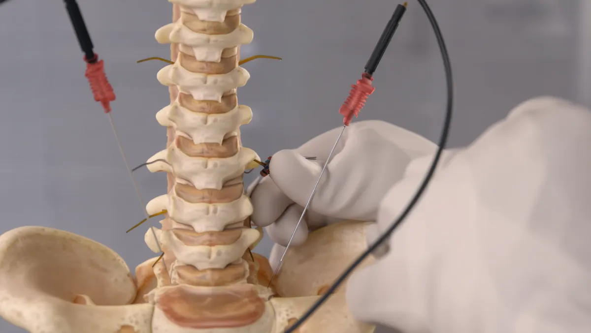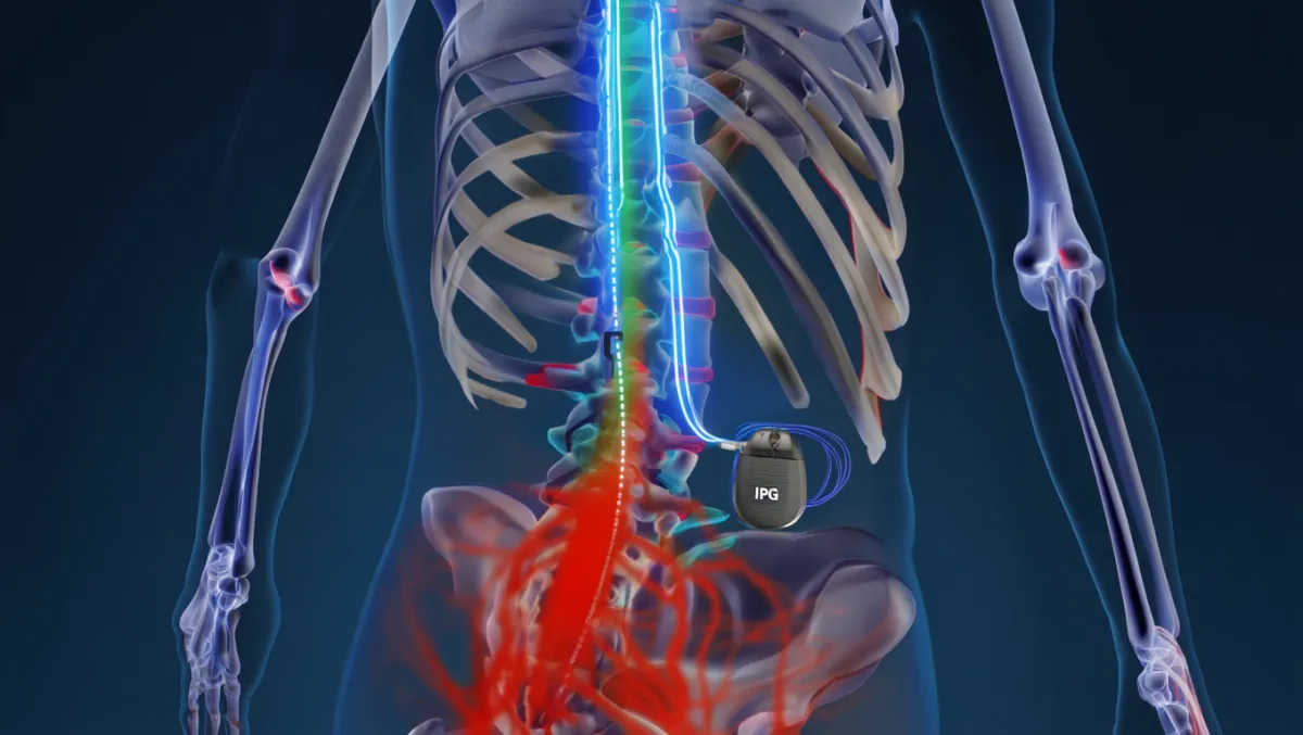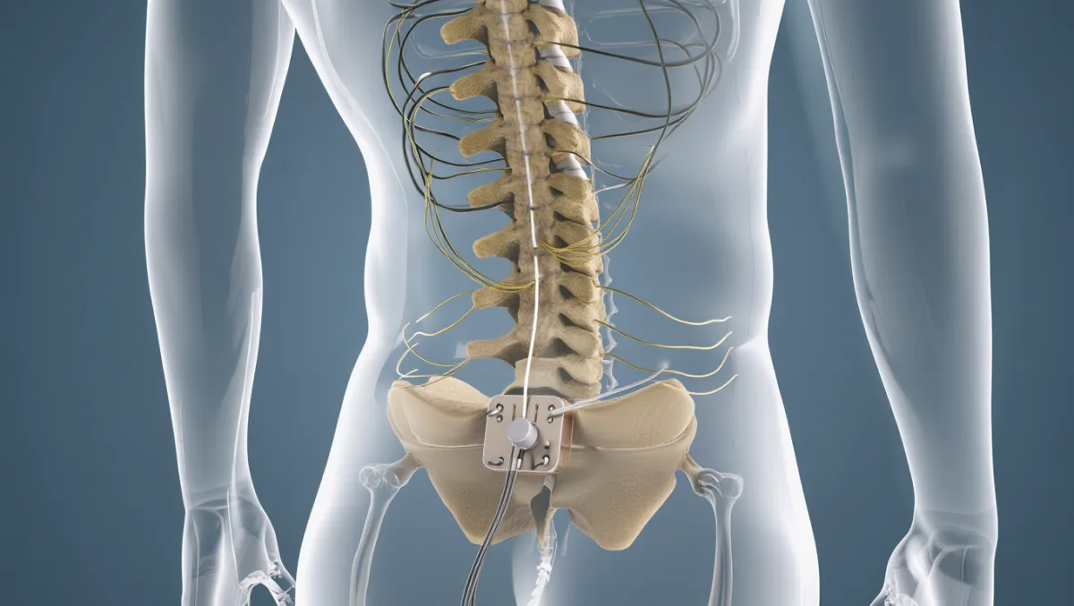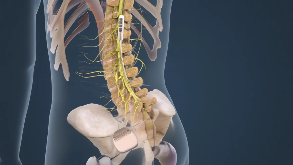 In simple terms: A small device implanted near the spine sends electrical pulses that reduce pain signals.