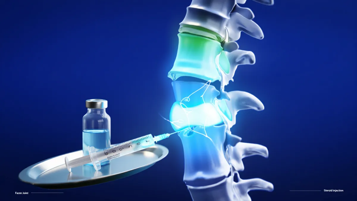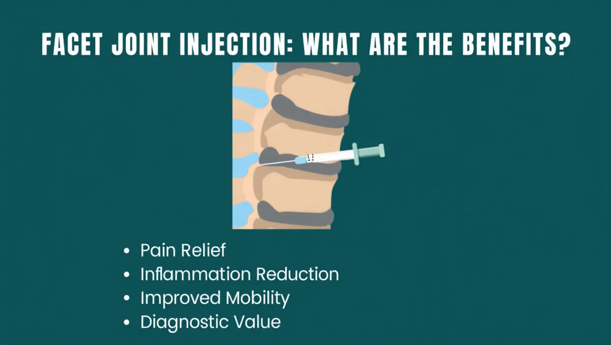 Scientifically: Facet joint injections involve percutaneous needle placement into the zygapophyseal joint capsule under fluoroscopy, followed by injection of corticosteroid and anesthetic to block nociceptive transmission and confirm diagnosis.