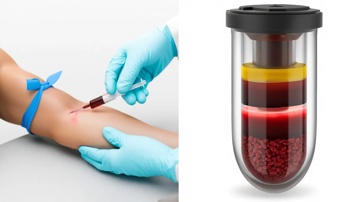 Processing: Dual-spin centrifugation yields PRP fraction (3–8 mL).