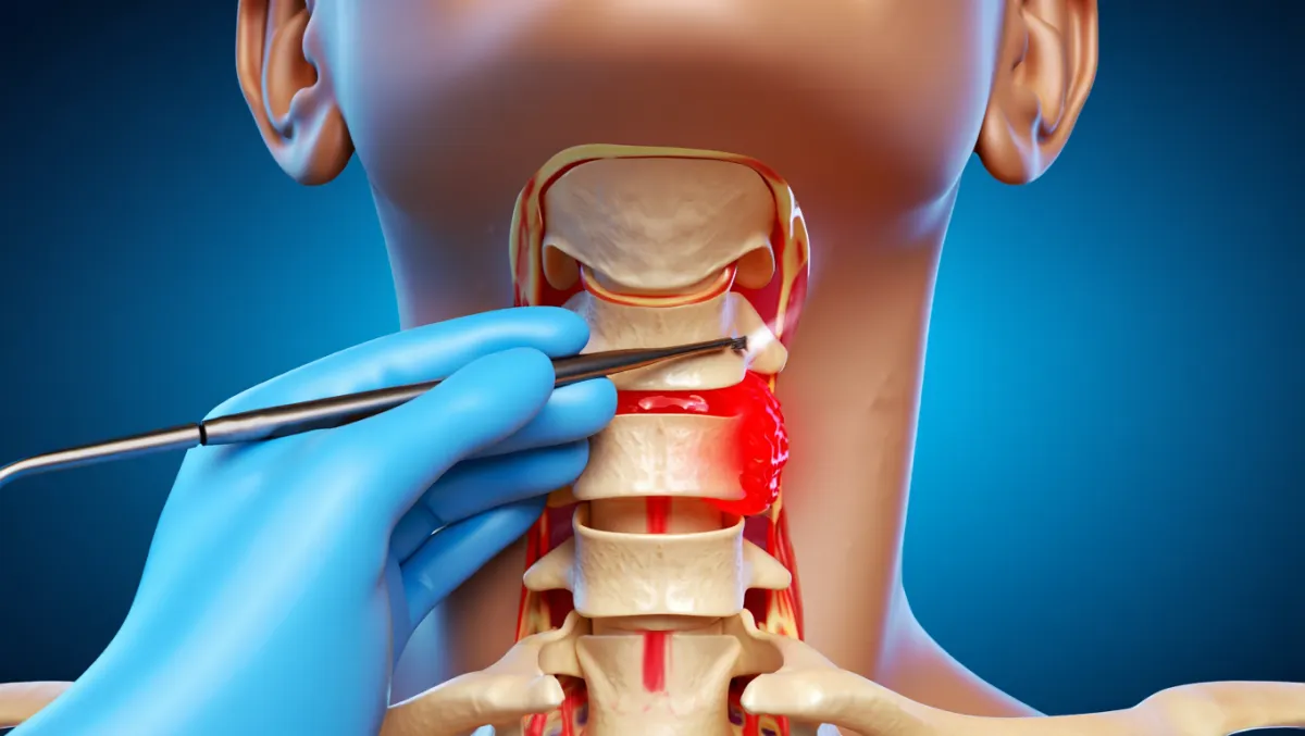 Incision: A midline incision (2–4 inches) is made over the affected level.