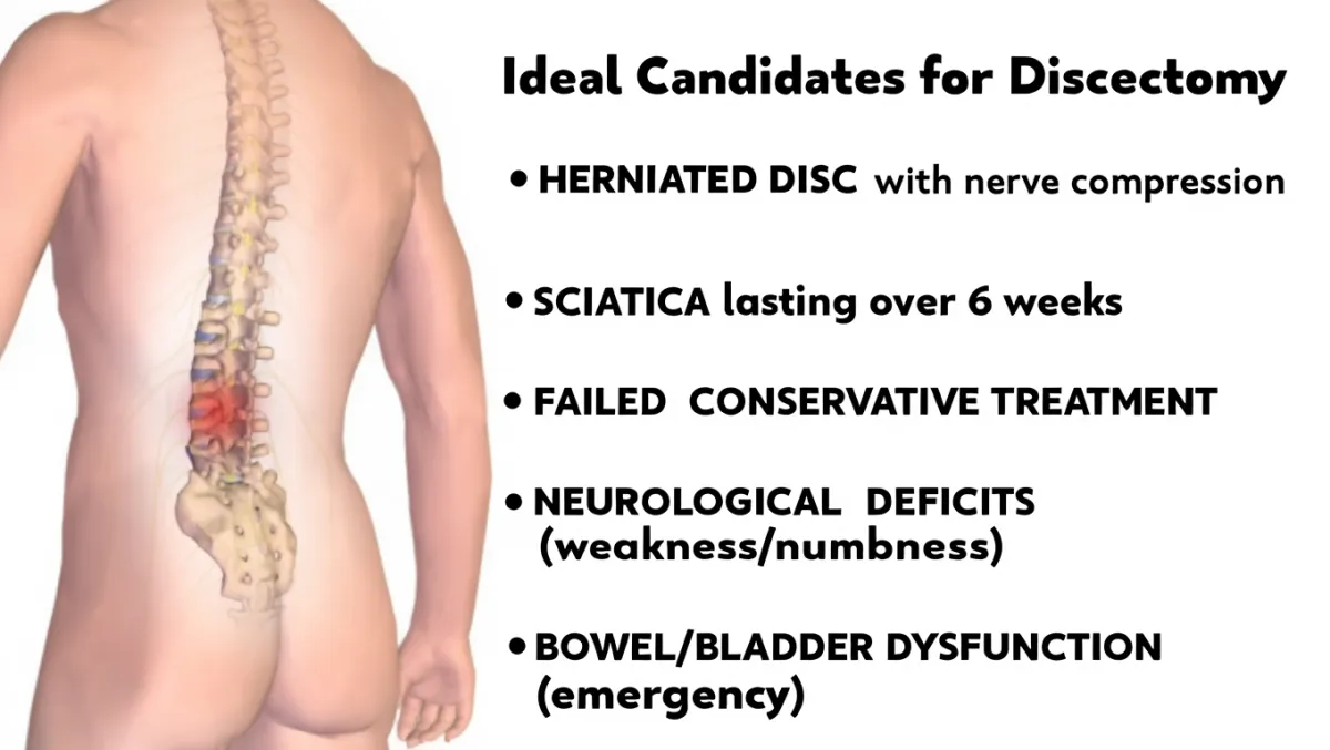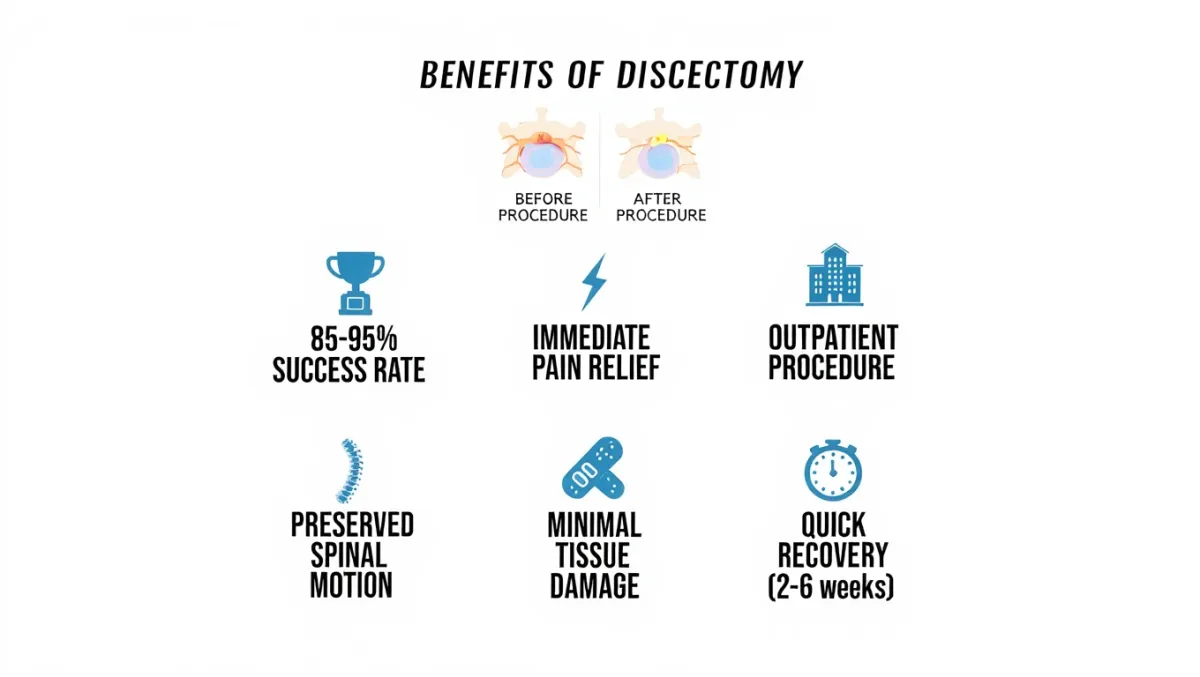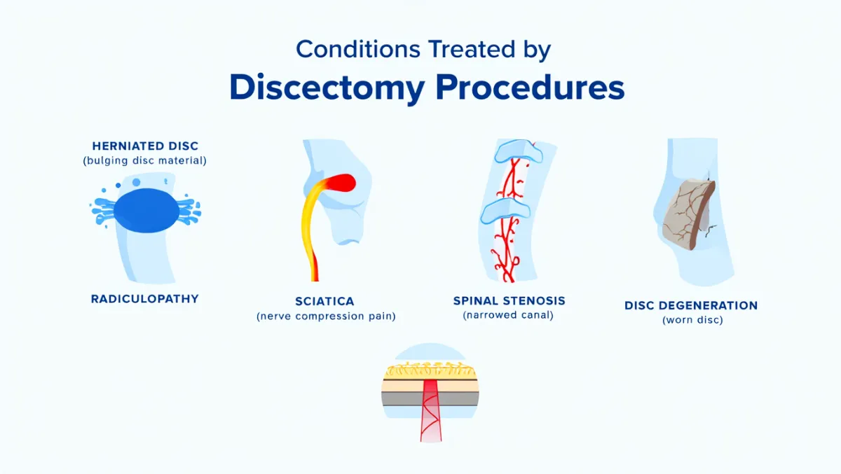 In simple terms: A standard discectomy is performed through a larger incision in the back, giving the surgeon direct access to the herniated disc and nerves.