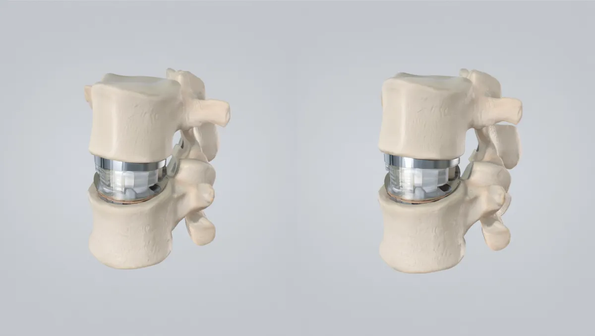 Artificial disc placement: A motion-preserving prosthesis is implanted between vertebrae.
