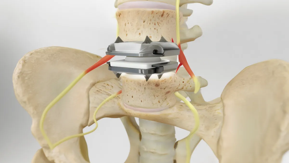 In simple terms: The damaged disc in the lower back is removed and replaced with an artificial disc, which relieves pressure on nerves and maintains motion.