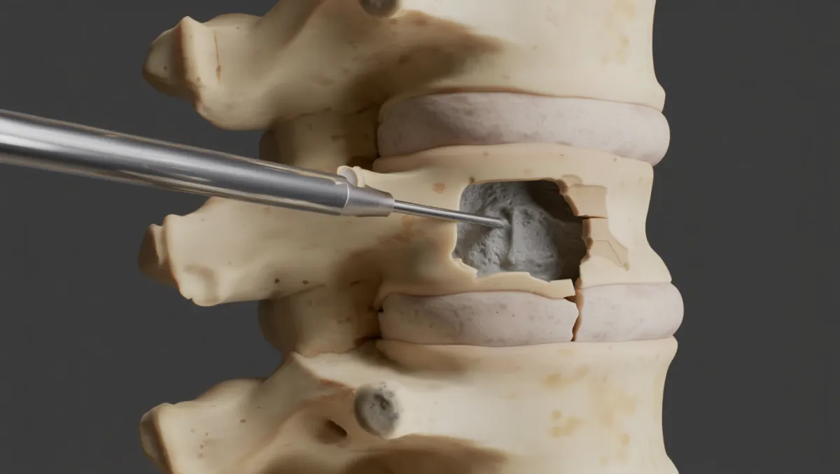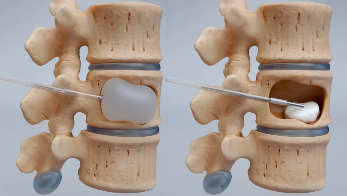 Cement injection: Bone cement fills the cavity, stabilizing the vertebra.